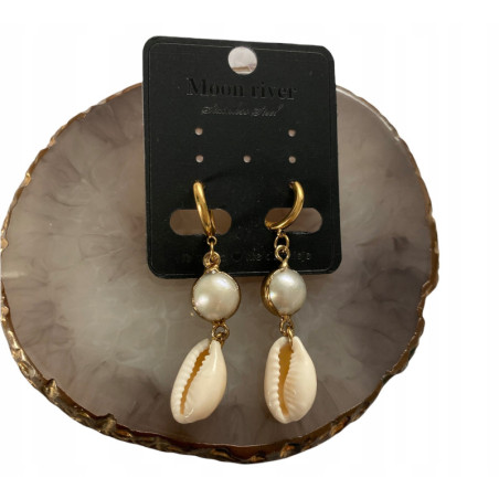 materiał: stal chirurgiczna 316L, perła naturalna, muszla naturalna