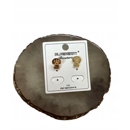 120 Złote kolczyki BLUEBERRY PIES PIESEK STAL 316