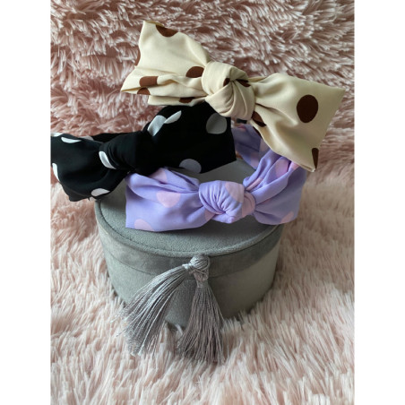 Szeroka opaska z podwójna kokardka. Kokardka ma druciki i można ja dowolnie uformować.