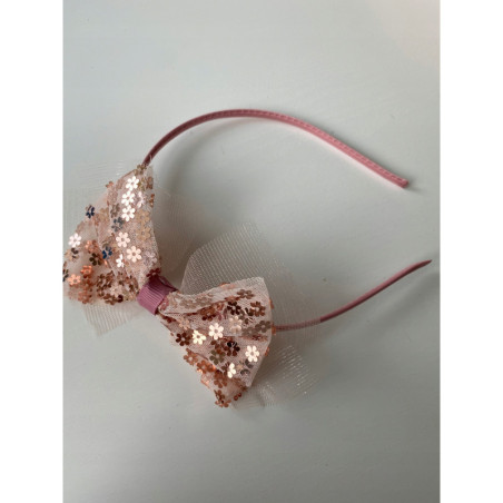 Opaska dla dzieci. Tiulowa kokardka ozdobiona cekinowymi kwiatkami.